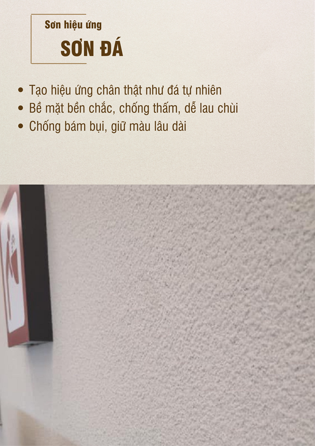 ✅ Chống thấm, chống nấm mốc: Đặc biệt các dòng sơn hiệu ứng bê tông, sơn giả đá có khả năng bảo vệ tường vượt trội.